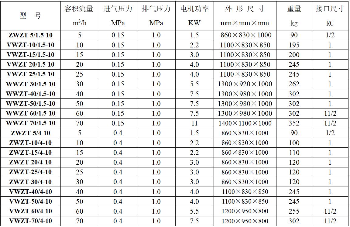 Suction pressure: 0~ 1.0Mpa (G), exhaust pressure: ≤5 Mpa (G).